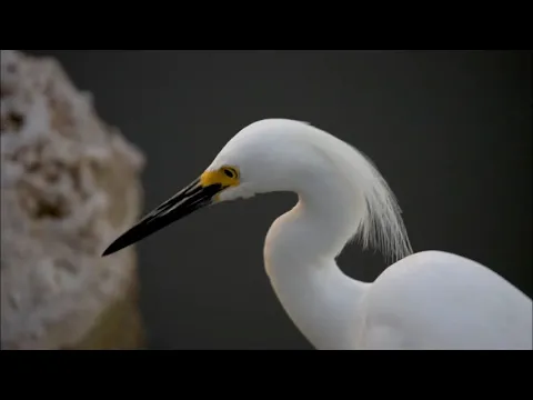 The Snowy Egret is known for its slender black beak, yellow eyes, and black legs with distinctive yellow feet. A yellow patch between the eye and the beak on its face turns reddish during the breeding season, and the bird grows long, ornate plumes extending from the head, neck, chest, and back when in breeding plumage.